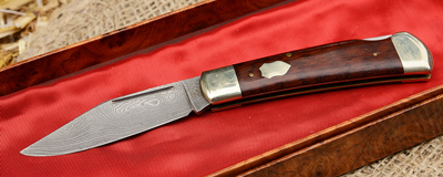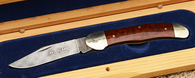 Klaas Taschenmesser mit Damastklinge, Schlangeholz Griff und Neusilberbacken in Sammlerschatulle --- 180,00 EURO