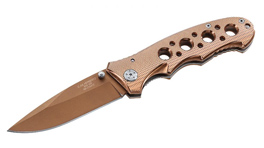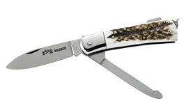 | Herbertz Jagd-Taschenmesser AISI 440 A, mit Säge und Korkenzieher Hirschhorn-Schalen, Heftlänge 11.0 cm, Klingenlänge 9.0 cm, Länge geöffnet 20.0 cm Gewicht 130 g nur 110,95 EURO | Herbertz Jagd-Taschenmesser 2 Klingen, Stahl 1.4116, Hirschhorn Bei diesem Herbertz Jagd-Taschenmesser werden Klinge und Aufbrechklinge aus dem rostfreien Stahl 1.4116 gefertigt, Rockwellhärte von 55-57 HRC. Für die Sicherungsschnur am Heftende ein Schlüsselring. nur 87,95 EURO | Herbertz Einhandmesser Bronze-Farbton. Die Drop-Point Klinge aus dem rostfreien AISI 420 Stahl kann über einen beidseitigen Daumenknopf in Position gebracht werden. Ein Liner Lock übernimmt die sichere Arretierung. Das Heft mit Aluminiumgriffschalen. Edelstahl-Gürtelclip wurde nur 18,95 EURO | ||