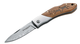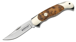 | Wetterlings Kompaktbeil Aufgrund des geringen Gewichts und der vielseitigen Anwendbarkeit eignet sich dieses Beil ideal für den Camping- und Outdooreinsatz. Durch den kurzen Stiel kann es als Messerersatz Verwendung finden und passt außerdem in den Rucksack oder an den Gürtel. Zum Fällen kleiner Bäume, Errichten eines Waldlagers oder zum Sammeln von Brennholz. Einsetzbar auch für gröbere Bildhauerarbeiten. Schneidenlänge 65 mm, Gesamtlänge 260 mm Kopfgewicht 550 g, Artikelnummer 708374 nur 65,00 EURO | Magnum Caveman Damast Gesamtlänge: 19,4 cm, Klingenlänge: 8,2 cm Gewicht: 118 g, Klingenstärke: 2,7 mm Klingenmaterial: Damast .Griffmaterial: Holz, Verschluss: Back Lock nur 39,95 EURO | Taschenmesser Böker Scout Thuja Gesamtlänge: 18,4 cm Klingenlänge: 8,0 cm, Gewicht: 160 g Klingenmaterial: N690 Griffmaterial: Thuja, Verschluss: Back Lock nur 154,95 EURO | ||